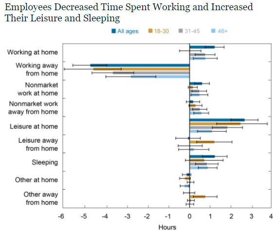 Liberty Street Economics series, the New York Fed revealed that 15% of the traditional full time workforce now works at home, and 30% of work is now performed in a hybrid home/office arrangement. Every day, Americans save 60 million hours in commuting.