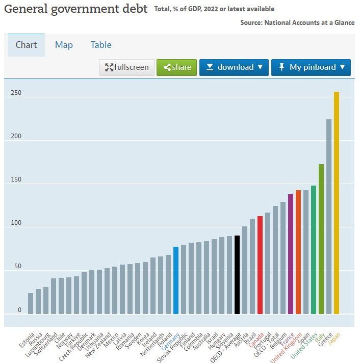 It would be comforting if both parties could put brinkmanship and partisanship aside and develop some strategies for increased productivity and revenue and decreased spending. If not, markets will certainly impose a new equilibrium with significantly higher long term interest rates on US government debt, a lower level of discretionary spending and perhaps imports, and perhaps lower bond ratings. Other nations, such as Japan and even China are facing some of these same challenges. However, Japan is more accustomed to this looming new reality, and China has the convenience of capital controls that ensure a ready supply of capital to fuel government spending there. Meanwhile, the U.S. ranks fourth, between Japan, Greece, and Italy, in its debt as share of GDP, but we seem to be moving up with a bullet.
