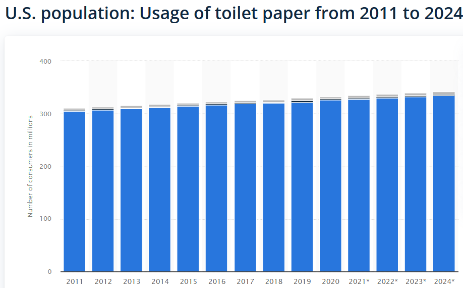 There are but a few suppliers of this essential item. In fact, 80% of all toilet paper is made by Georgia-Pacific, Procter & Gamble, or Kimberly-Clark, in a dozen locations in the country carefully chosen to be close to factors of production, cheap energy, and easy access to nearby markets. These plants work at full capacity and multiple shifts and tap local factor supplies to just keep up with demand.