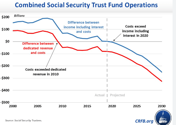 These effects have compounded to the point that it is now estimated the social security system will require hefty governmental net injections by 2034, or social security benefits will need to drop by 23% of what was promised.