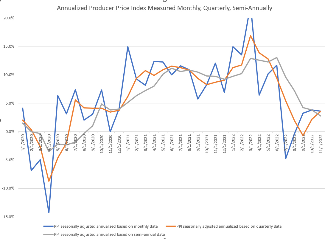 In this blog we have been tracking not the trend toward moderating increases in the price level at the consumer and producer level over a year, but rather the more revealing annualized increases over three and six months. The Friday publication of the monthly Producer Price supports this trend. The data from this week showed still strong job creation, but moderating producer price increases that have now fallen to an annualized rate of 3.6%.