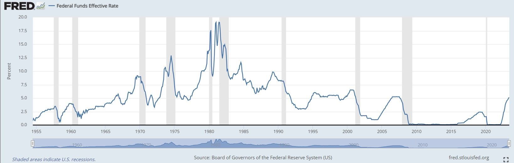 So long as inflation and interest rates change only slowly, banks have time to adjust their portfolios to maintain their margins. Loans at rates relevant five or ten years earlier are replaced with loans that more closely represent recent interest rates. But, when their cost of borrowing rises to five percentage points as a result of a rapid ratcheting up of the Federal Reserve rate, their cost of borrowing can exceed the return on their loan portfolio. This has resulted in some spectacular bank failures, including the two largest bankruptcies in U.S. banking history.